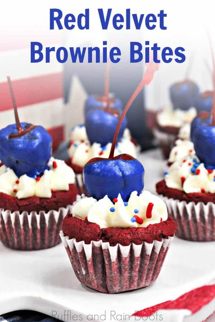 These red velvet brownie bites for 4th of July are too cute! I need to make this patriotic cupcake for my July 4th dessert table.