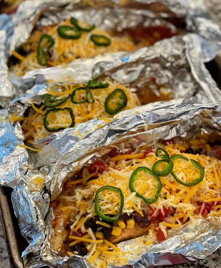 These fiesta chicken foil packets are a flavorful way to add some spice eto your campfire meals.