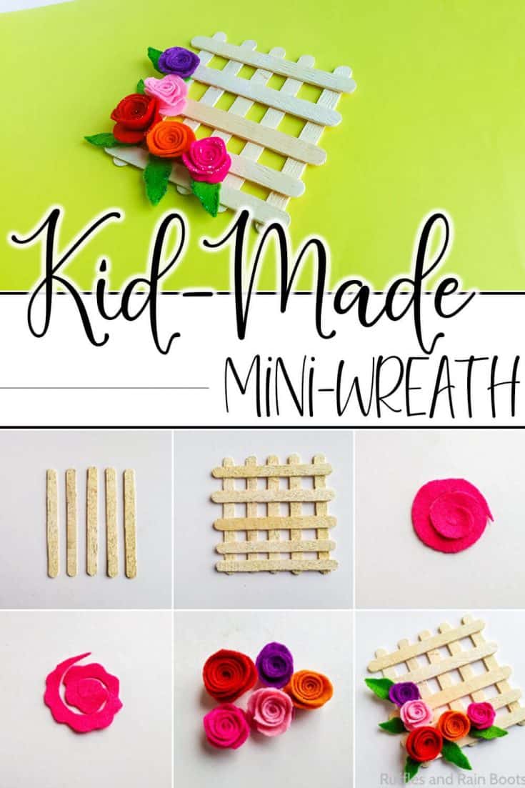 This popsicle stick mini wreath kids craft is so fun and only took a few minutes! Plus, it makes a fun decoration with the little rolled felt roses and all.